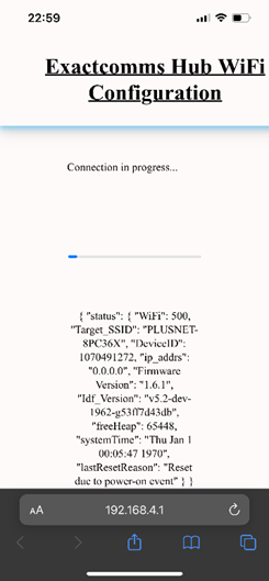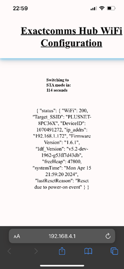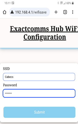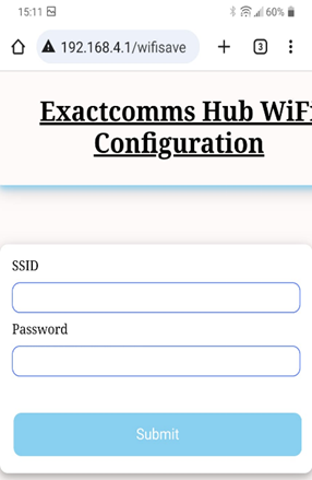 192.168.4.1/wifisave, press “Enter” to access the Exactcomms Wi-Fi Gateway configuration page.