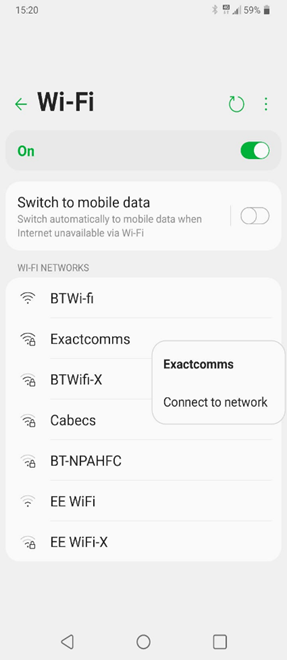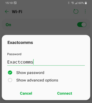 4. Enter the password as Exactcomms and then tap “Connect”.