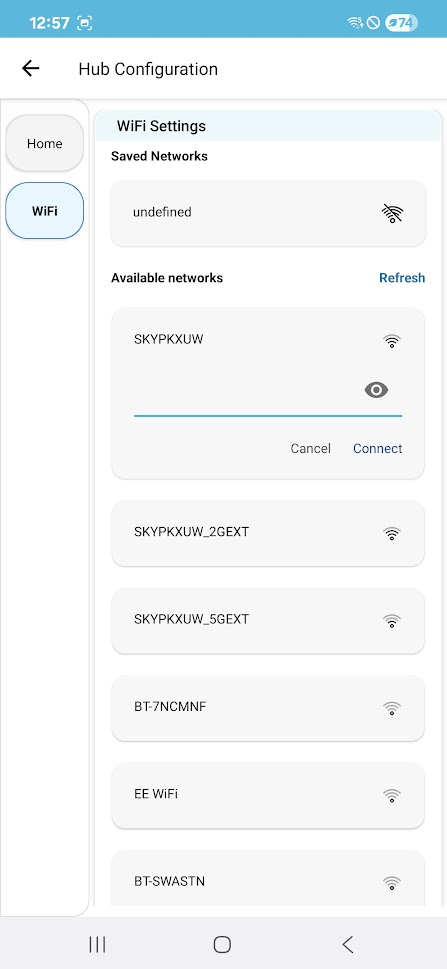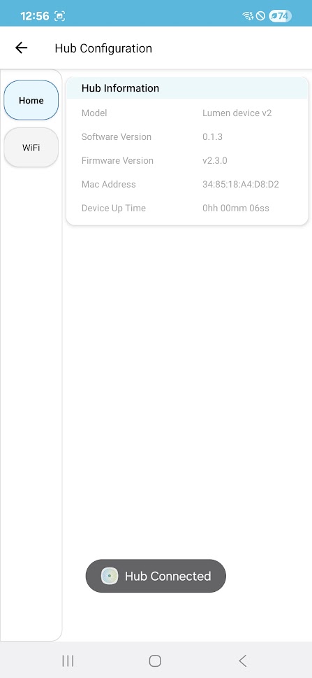 From the Hubs tab, tap on the detected hub (e.g., HUBv2) to open its configuration panel.