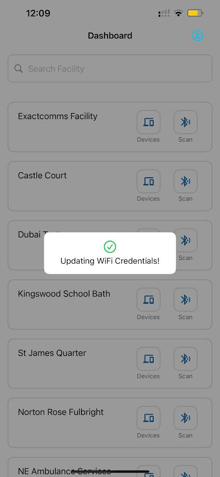 After entering your WiFi details and saving or connecting, the system will confirm whether the gateway has received and applied the settings.