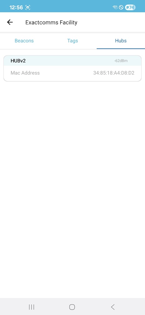 Tap on the “Hubs” tab at the top of the screen to switch from “Beacons” or “Tags” view.